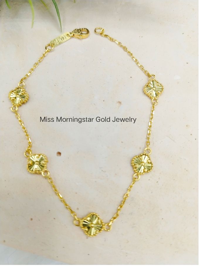 Embrace vintage sophistication with our **18k Saudi Gold Flower Station Bracelet**. Each delicate floral motif is a whisper of romance, handcrafted in luminous 18k gold that graces your wrist with effortless charm. Perfect for layering or making a subtle statement on its own.
