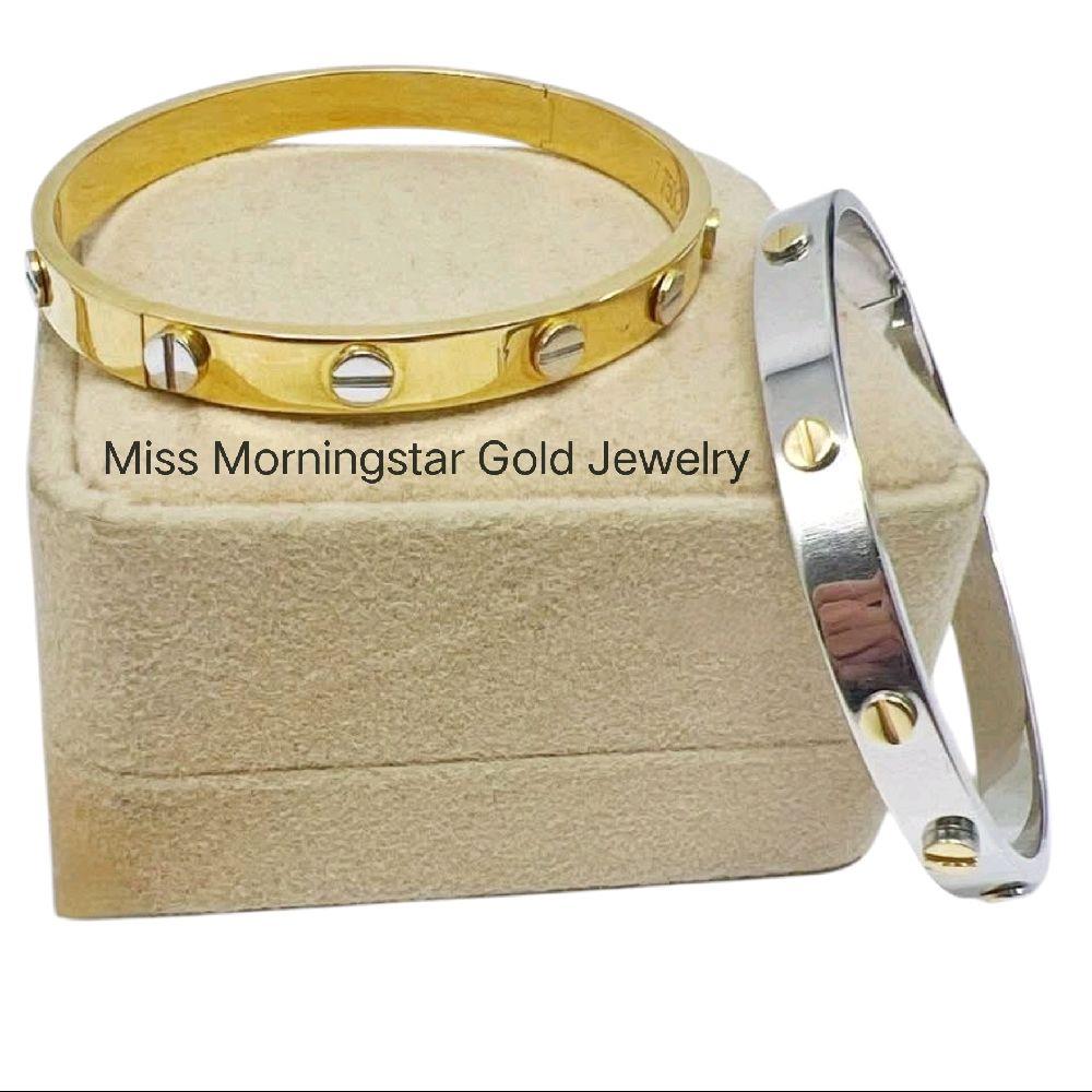 Be the first to review “18k Two-Toned Embossed Bangle Bracelet Screw Lock”