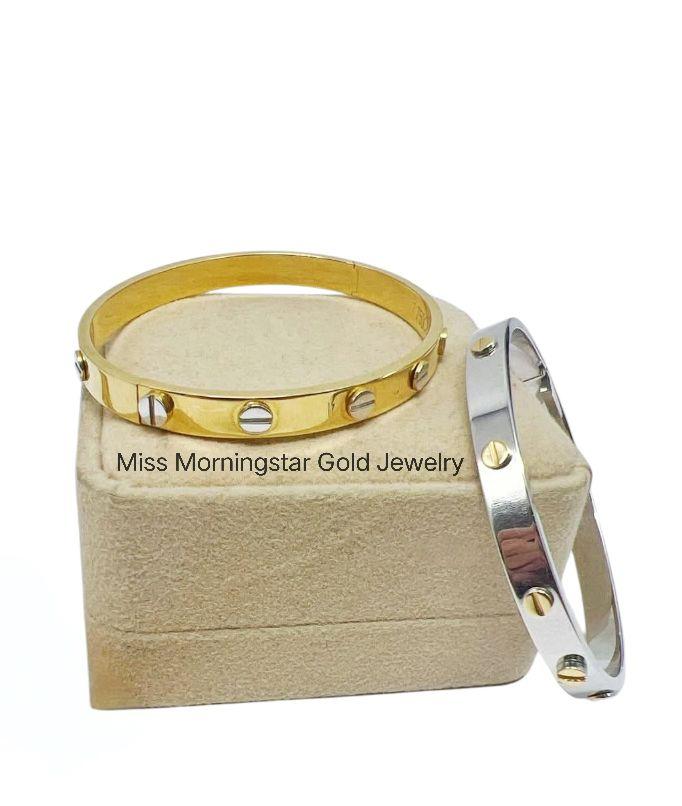 18k Two-Toned Embossed Bangle Bracelet Screw Lock