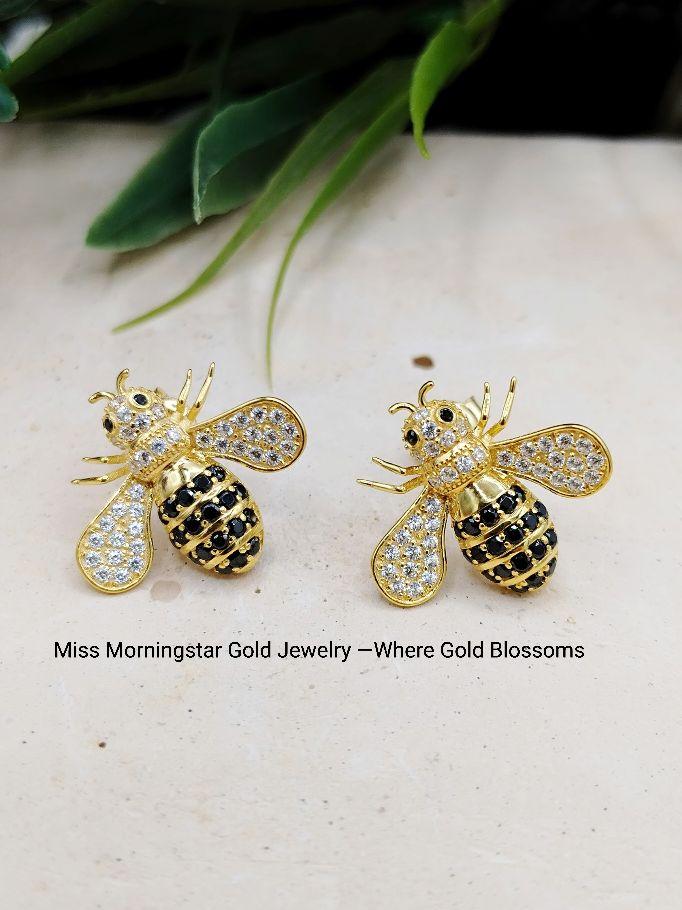 MsMorningstar 18k Blossom Queens Nectar : Queen Bee Earrings | Floral Collection