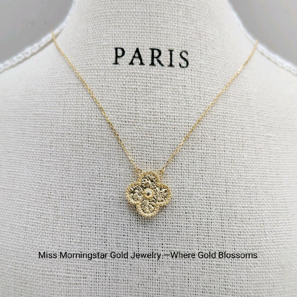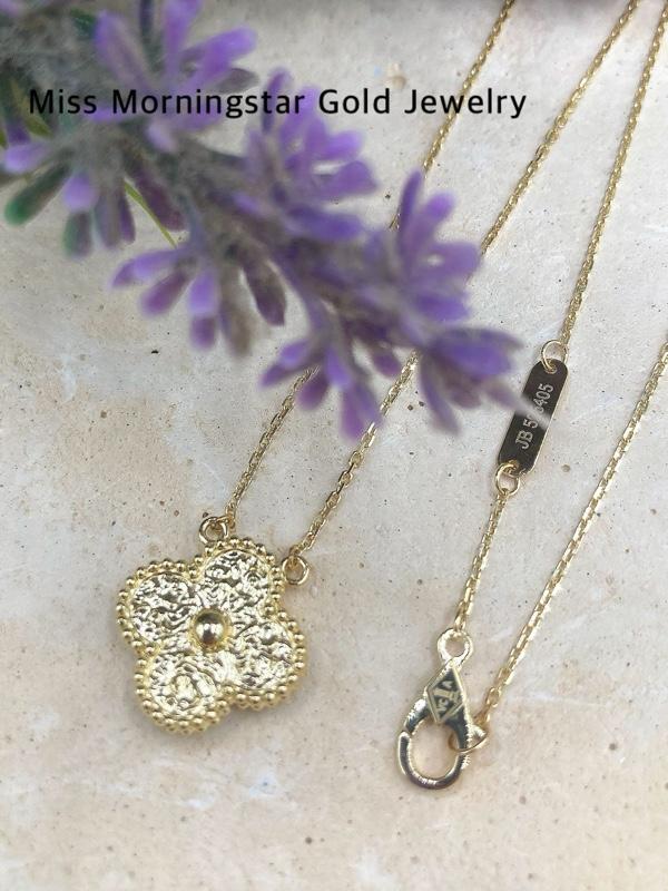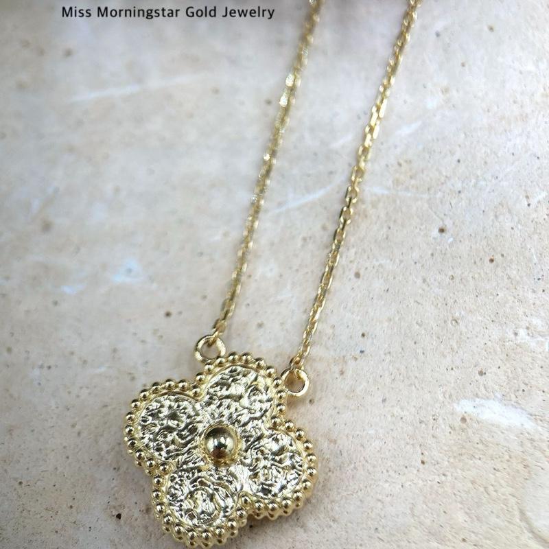MsMorningstar 18k HK Vintage Hammered Flower Necklace | Floral Collection