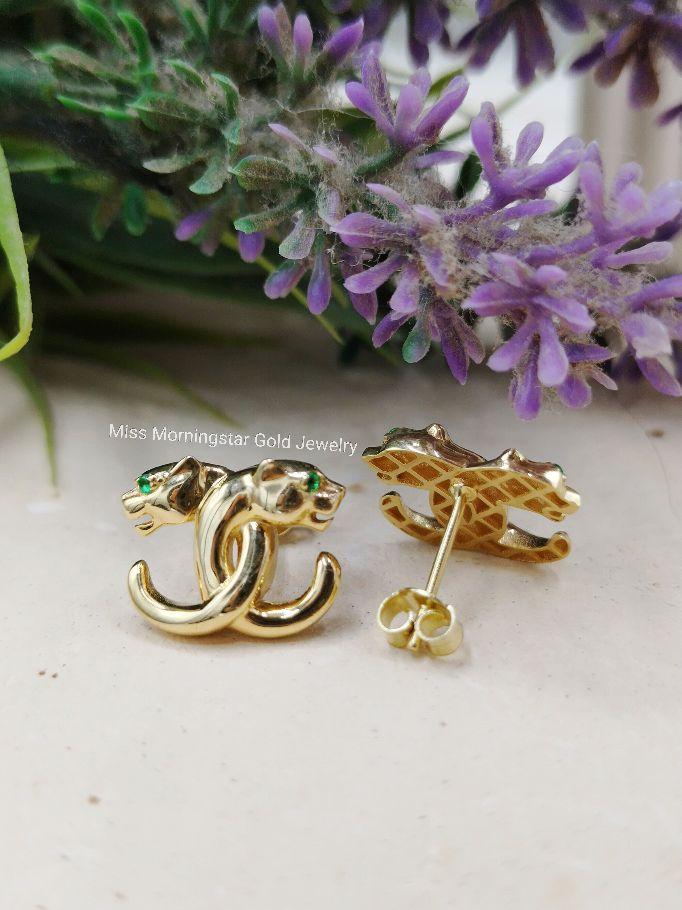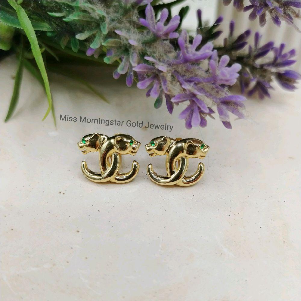 Unleash your style with these 18 karat gold Panthera stud earrings, adorned with captivating green eyes. Expertly crafted for a premium finish, they’re a stunning statement of luxury and fierce elegance.