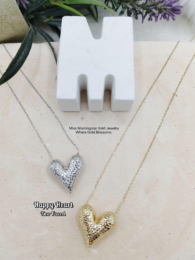 MsMorningstar 18k Two Faced Happy Heart Center Necklace | Premium Version | RVCAB