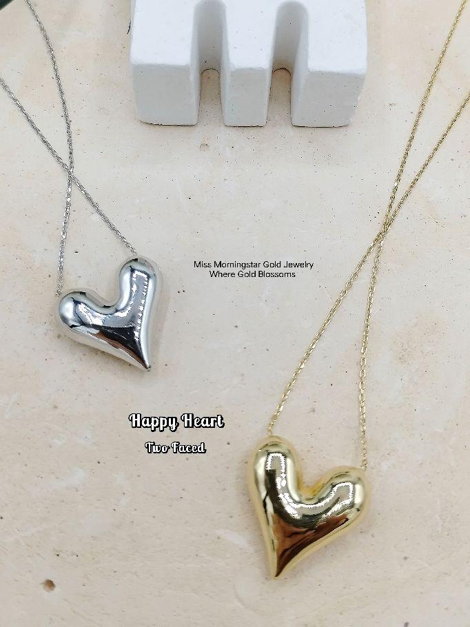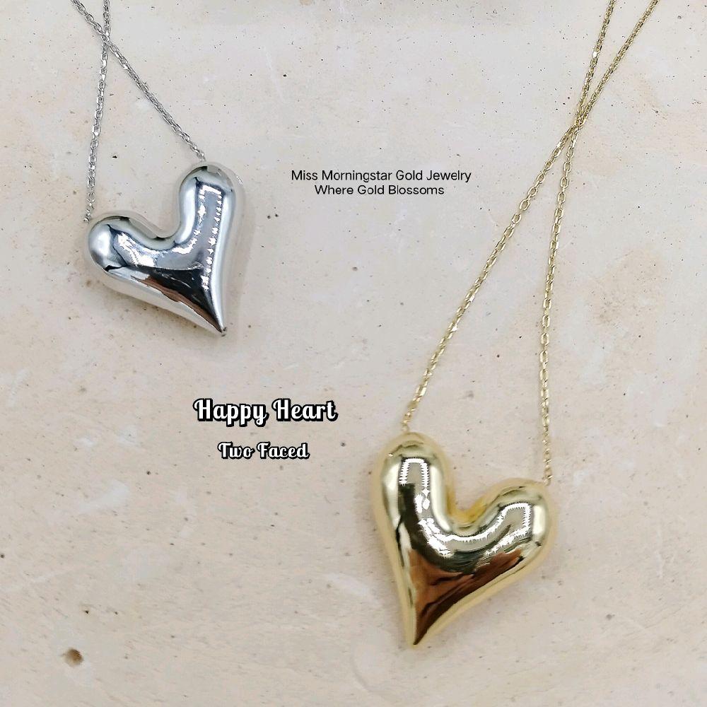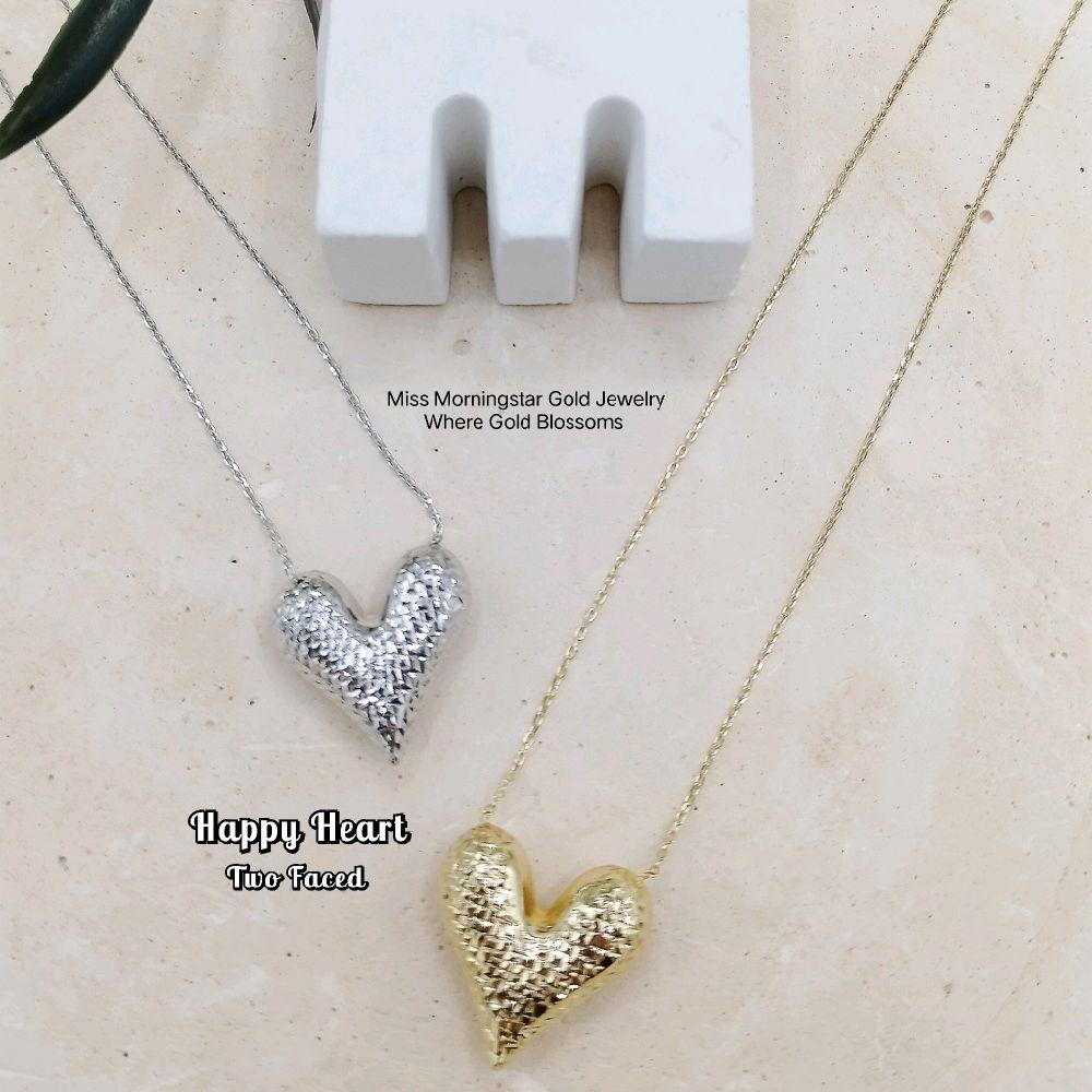 MsMorningstar 18k Two Faced Happy Heart Center Necklace | Premium Version | RVCAB