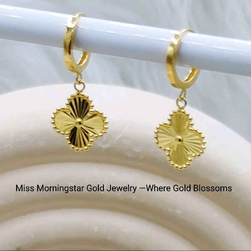 MsMorningstar 18k Vintage Clover Drop Hoop Earrings | Designer Collection